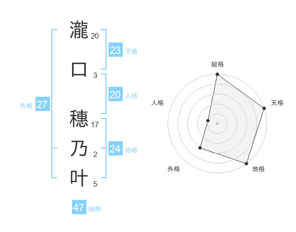 瀧口 穗乃叶さんの総格は47画の5点!