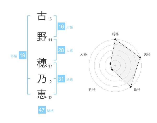 古野 穗乃恵さんの総格は47画の5点!