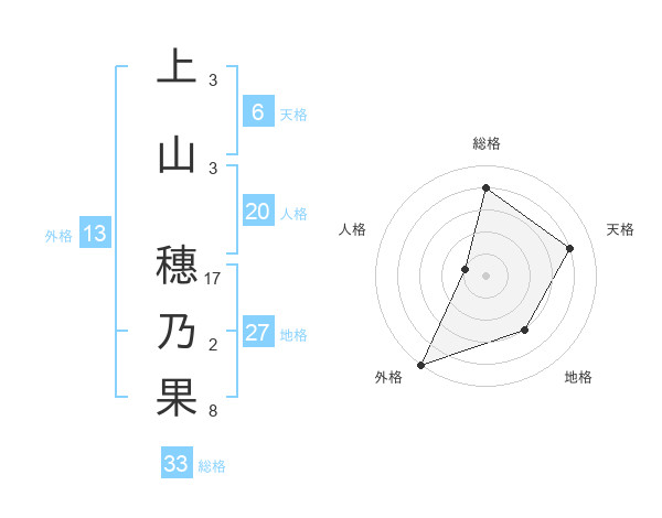 上山 穗乃果さんを姓名の画数から五運を鑑定