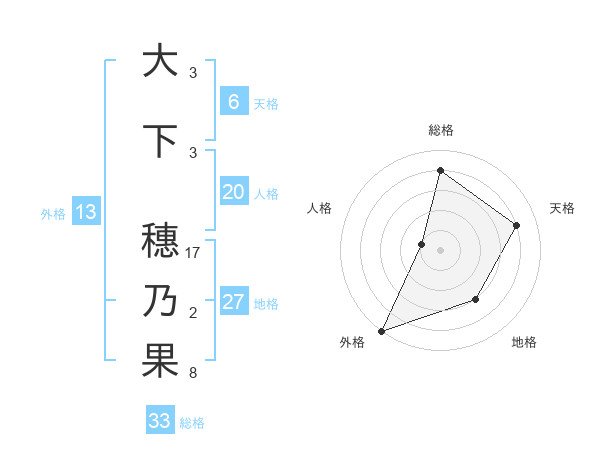 大下 穗乃果さんを姓名の画数から五運を鑑定