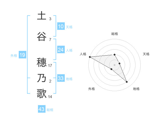 土谷 穗乃歌さんの総格は43画の2点!