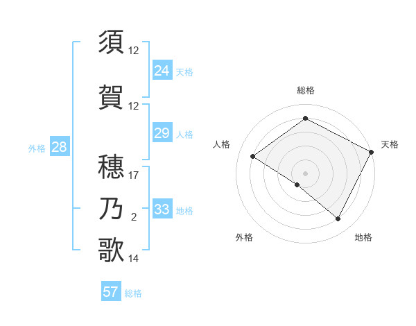 須賀 穗乃歌さんを姓名の画数から五運を鑑定