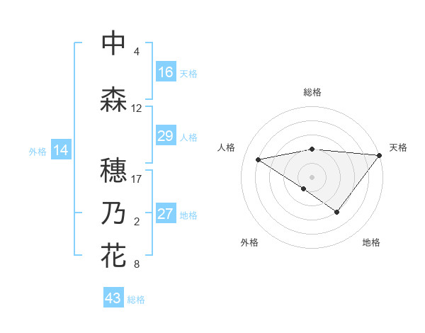 中森 穗乃花さんを姓名の画数から五運を鑑定