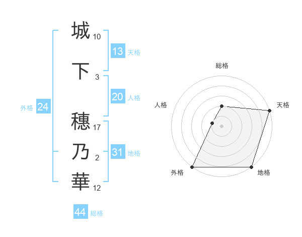 城下 穗乃華さんを姓名の画数から五運を鑑定