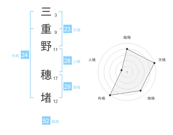三重野 穗堵さんを姓名の画数から五運を鑑定
