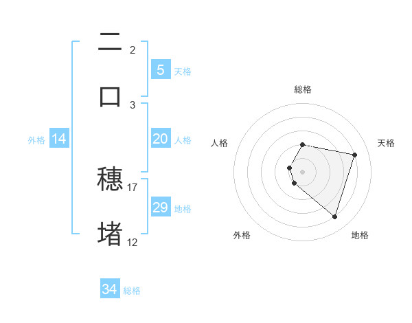 二口 穗堵さんの総格は34画の2点!