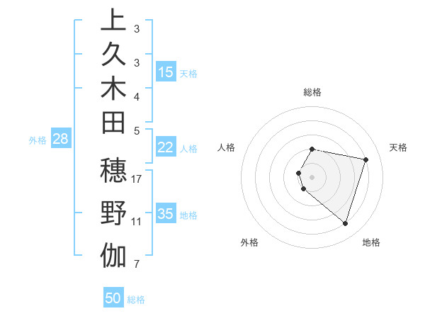 上久木田 穗野伽さんを姓名の画数から五運を鑑定