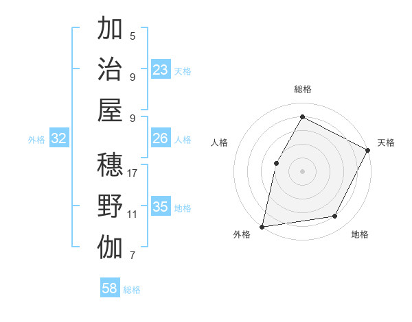 加治屋 穗野伽さんを姓名の画数から五運を鑑定