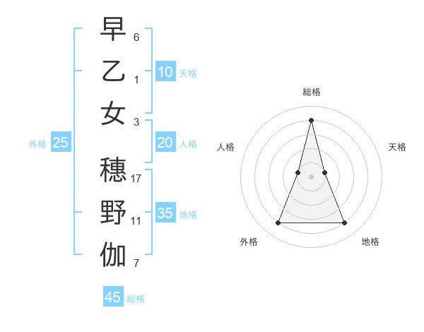 早乙女 穗野伽さんを姓名の画数から五運を鑑定