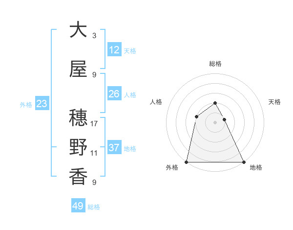 大屋 穗野香さんを姓名の画数から五運を鑑定