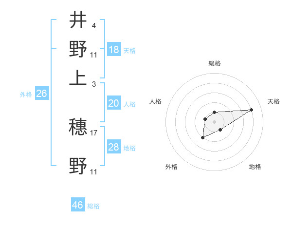 井野上 穗野さんの総格は46画の1点!