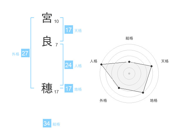 宮良 穗さんの天格は17画の4点!