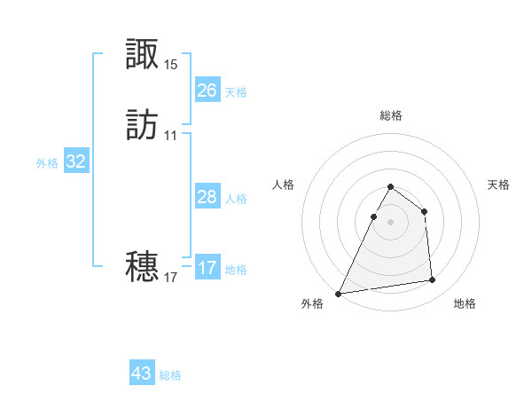 諏訪 穗さんの総格は43画の2点!