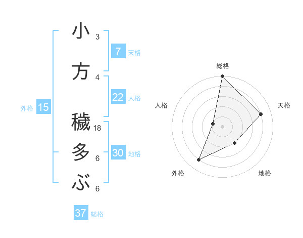 小方 穢多ぶさんの総格は37画の5点
