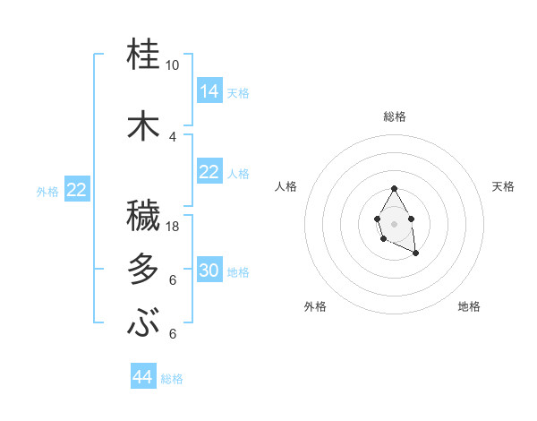 桂木 穢多ぶさんを姓名の画数から五運を鑑定