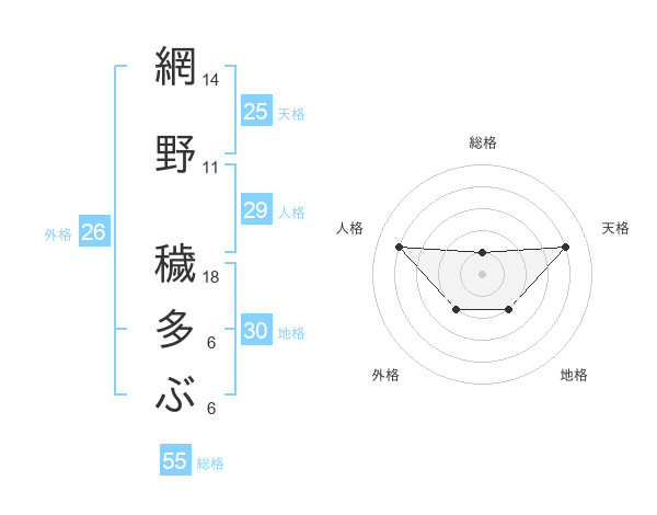 網野 穢多ぶさんの総格は55画の1点!