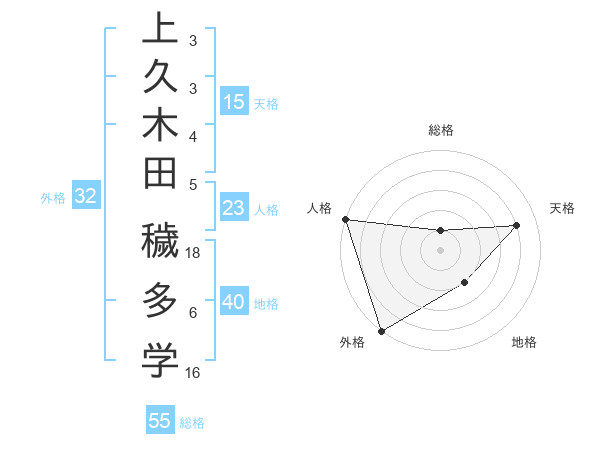 上久木田 穢多学さんを姓名の画数から五運を鑑定