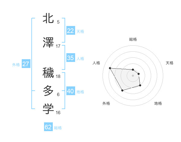 北澤 穢多学さんを姓名の画数から五運を鑑定