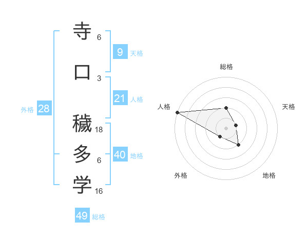 寺口 穢多学さんの総格は49画の2点!