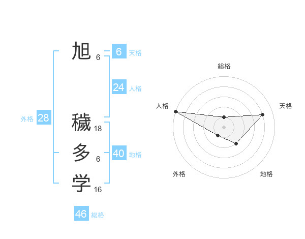 旭 穢多学さんの天格は6画の4点!