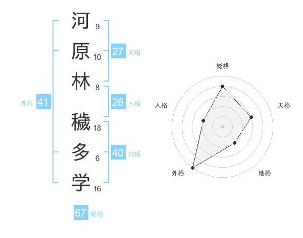 河原林 穢多学さんを姓名の画数から五運を鑑定