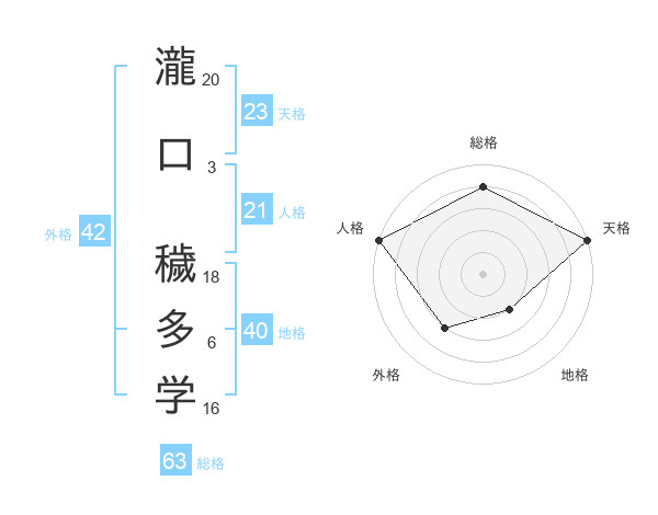 瀧口 穢多学さんの天格は23画の5点!