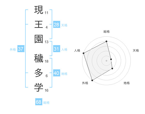 現王園 穢多学さんを姓名の画数から五運を鑑定