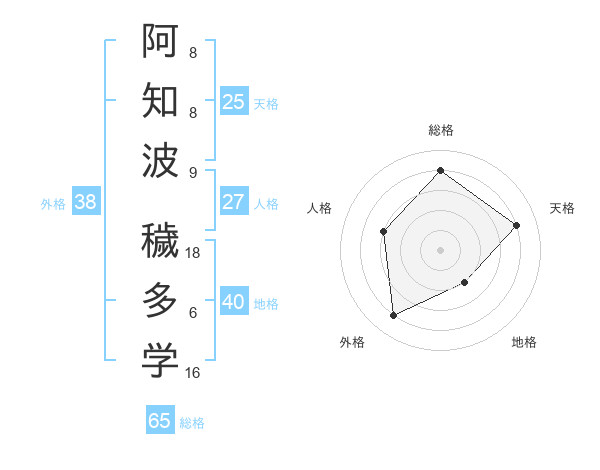 阿知波 穢多学さんの総格は65画の4点!