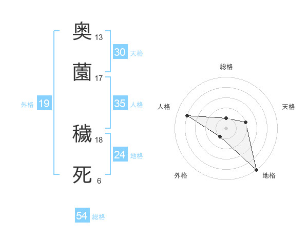 奥薗 穢死さんを姓名の画数から五運を鑑定