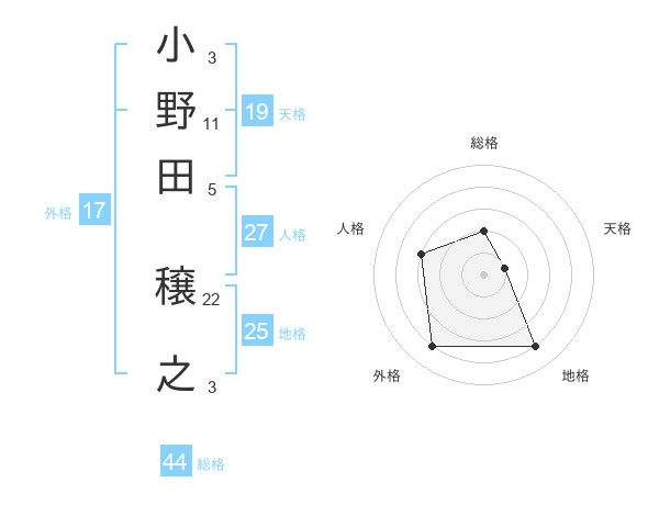 小野田 穣之さんを姓名の画数から五運を鑑定