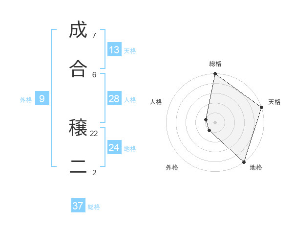 成合 穣二さんの総格は37画の5点!
