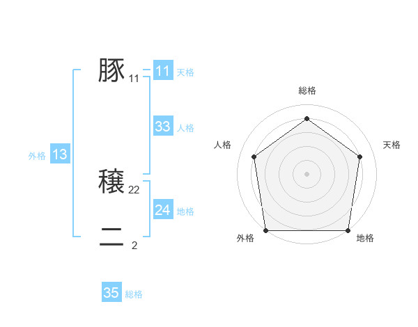 豚 穣二さんの総格は35画の4点!