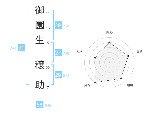 御園生 穣助さんの総格は58画の4点!