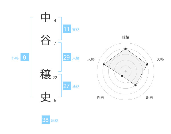 中谷 穣史さんの総格は38画の4点!