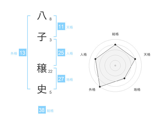 八子 穣史さんの総格は38画の4点!