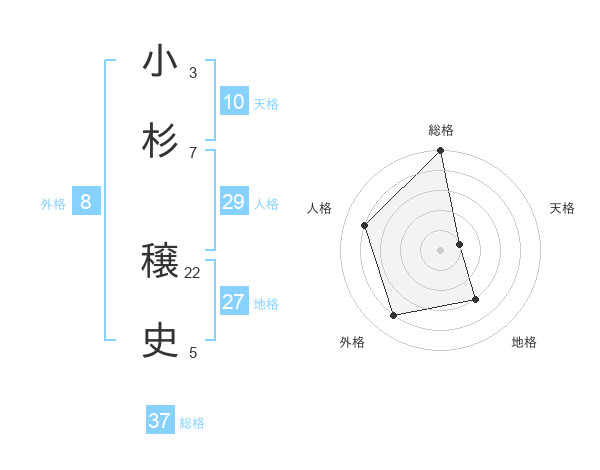 小杉 穣史さんの総格は37画の5点!