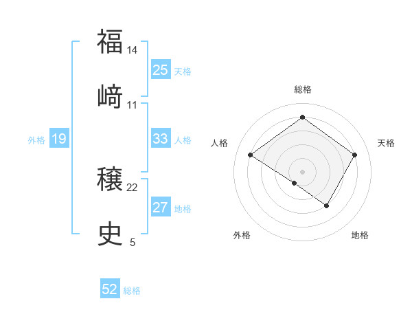 福﨑 穣史さんを姓名の画数から五運を鑑定