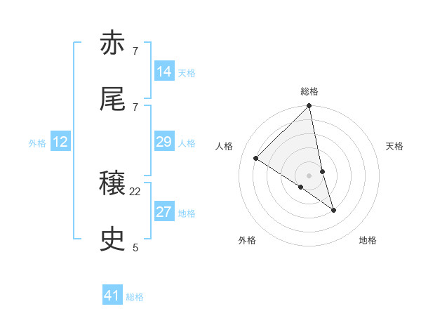 赤尾 穣史さんの総格は41画の5点!