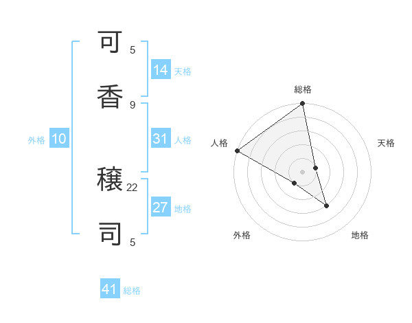 可香 穣司さんの総格は41画の5点!