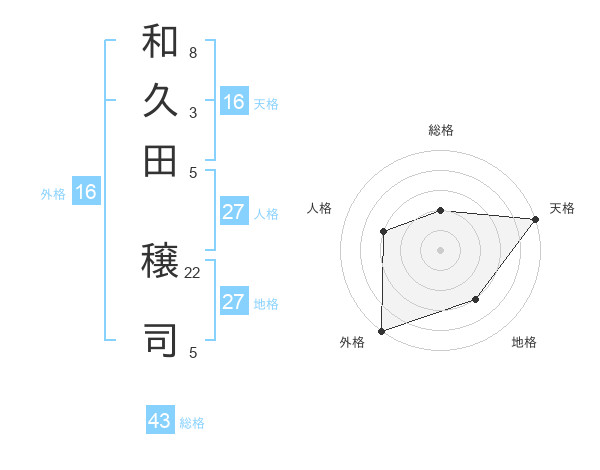 和久田 穣司さんを姓名の画数から五運を鑑定