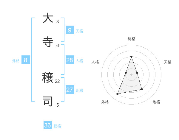 大寺 穣司さんを姓名の画数から五運を鑑定