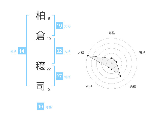 柏倉 穣司さんの総格は46画の1点!