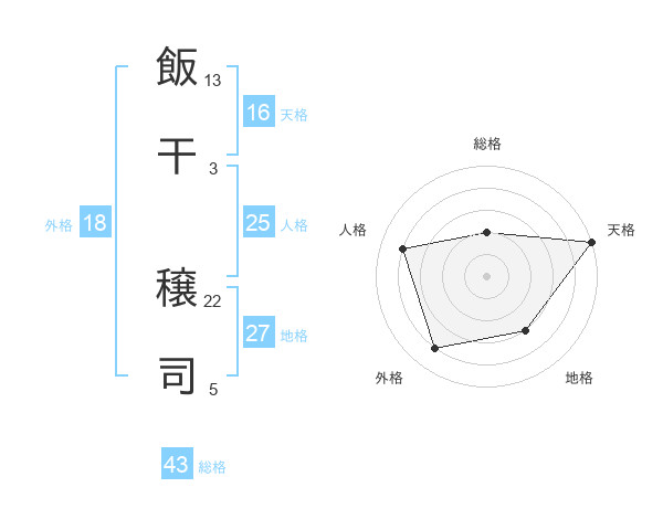 飯干 穣司さんの天格は16画の5点!