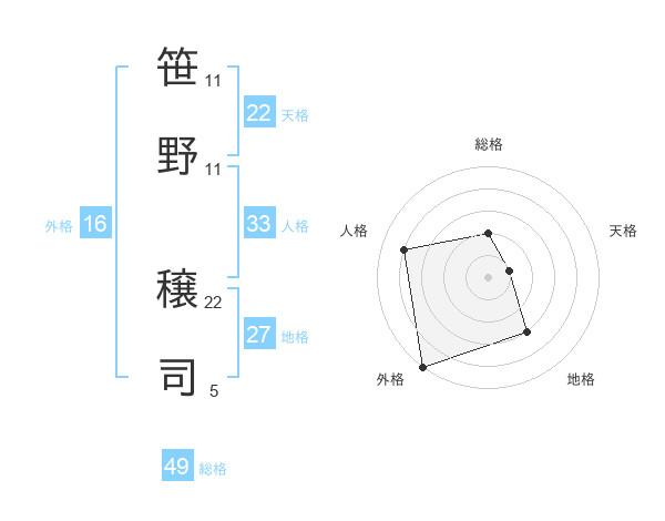 笹野 穣司さんを姓名の画数から五運を鑑定
