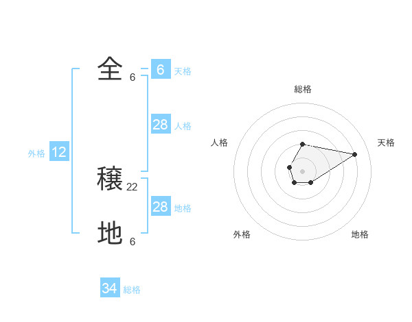 全 穣地さんの総格は34画の2点!