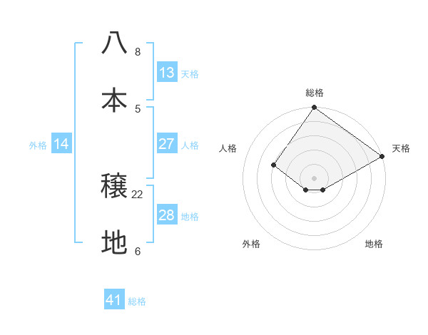 八本 穣地さんの総格は41画の5点!