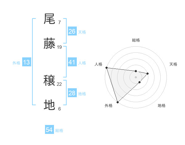 尾藤 穣地さんの外格は13画の5点!
