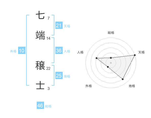 七端 穣士さんの天格は21画の5点!