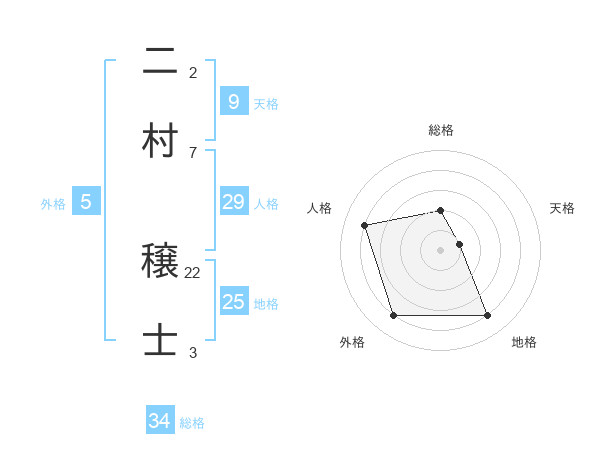 二村 穣士さんの総格は34画の2点!