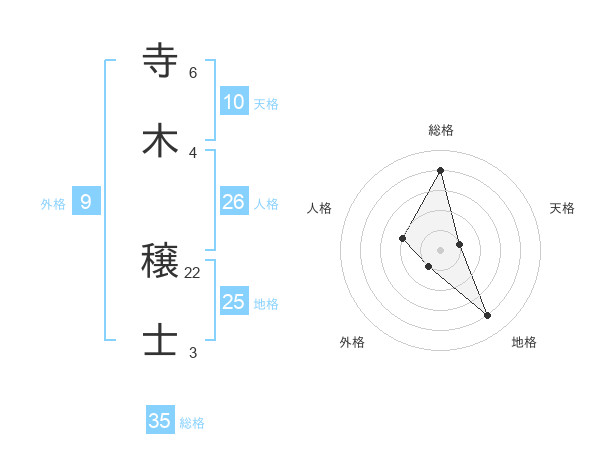 寺木 穣士さんの総格は35画の4点!